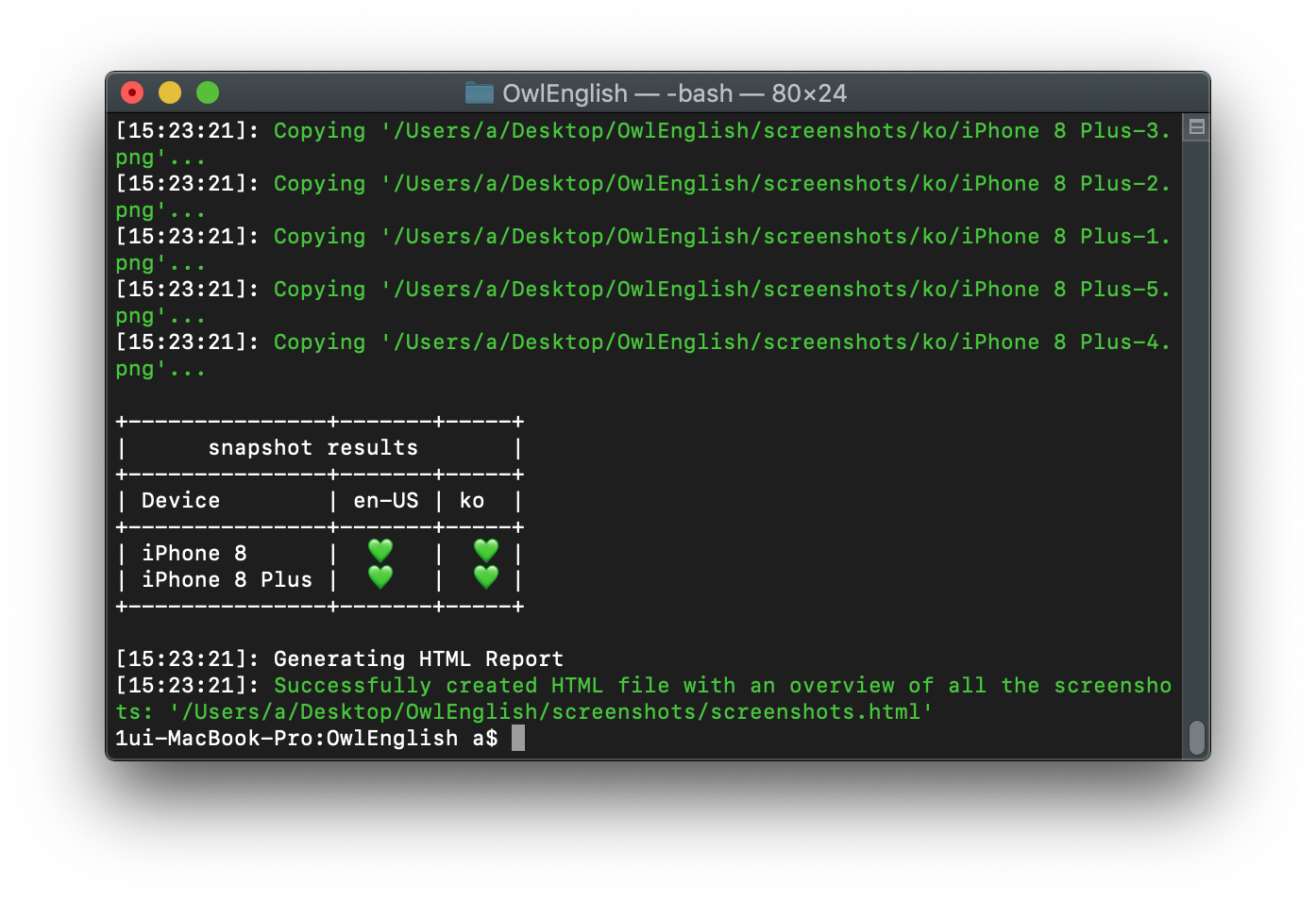 하면 알아서 터미널에서 쭈루루루룩 나오면서 찍어준다.