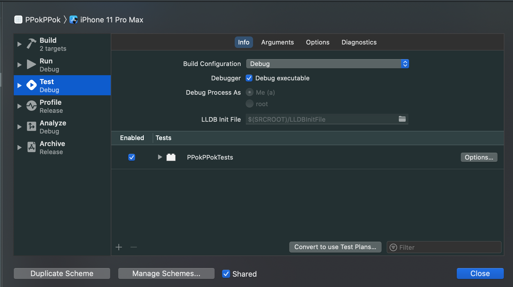 Product > Scheme > Edit Scheme 에 들어가보도록 하자.