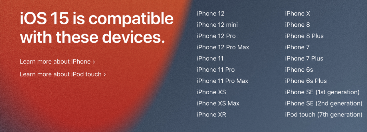 2. 아이폰 iOS 15 업데이트 대상은 아래와 같다.