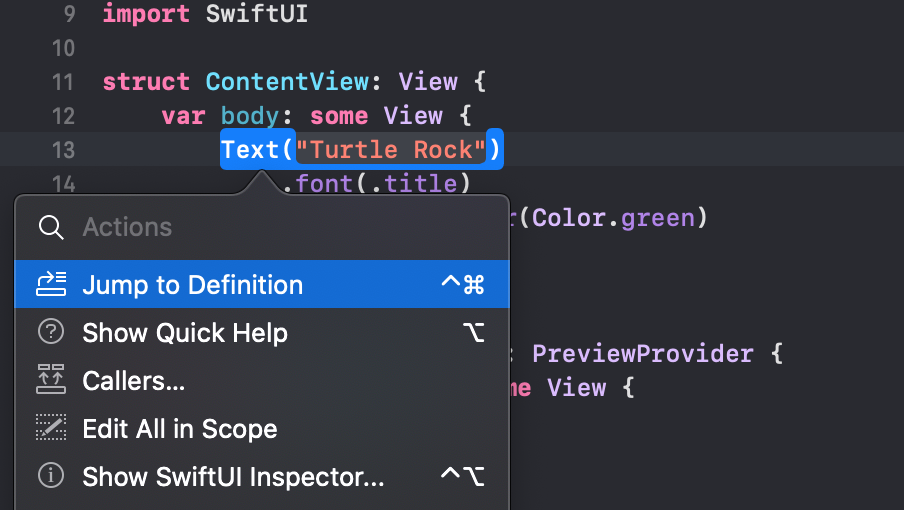 이번엔 코드에서 텍스트를 Command 버튼을 누른채 클릭하면 된다.