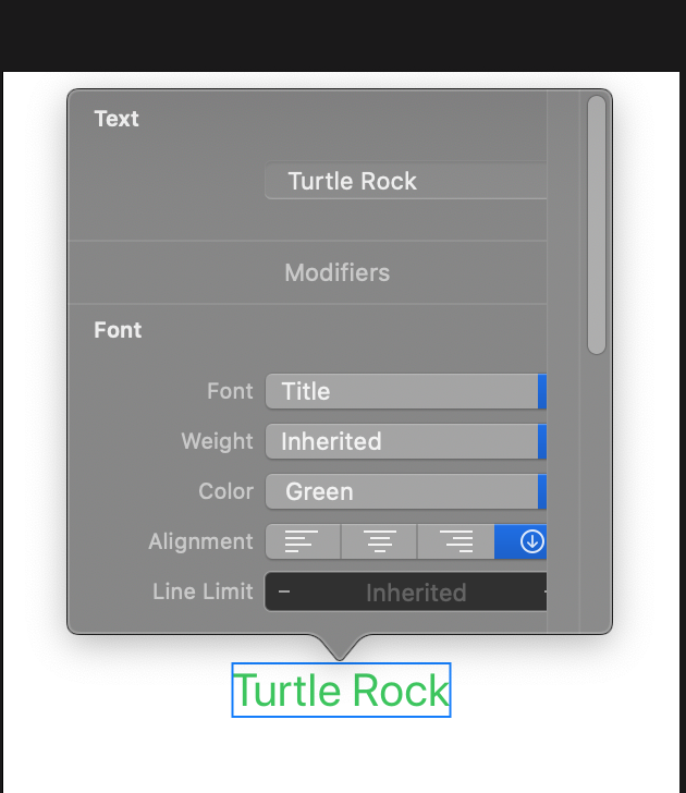 Preview에 있는 텍스트를 Command 버튼을 누른 채 클릭하면 저렇게 뜨는데 Inspecter 를 눌러준다.