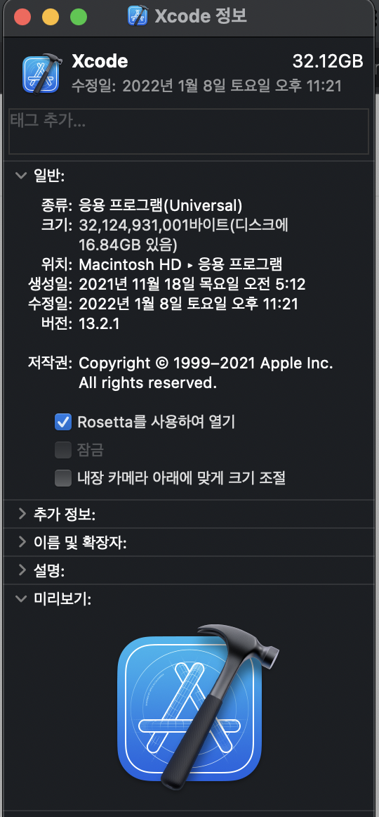 결론은 응용 프로그램에서 Xcode를 로제타로 열거나 빌드시 Debug 버전말고 release 버전으로 빌드해주면 해결된다!!!