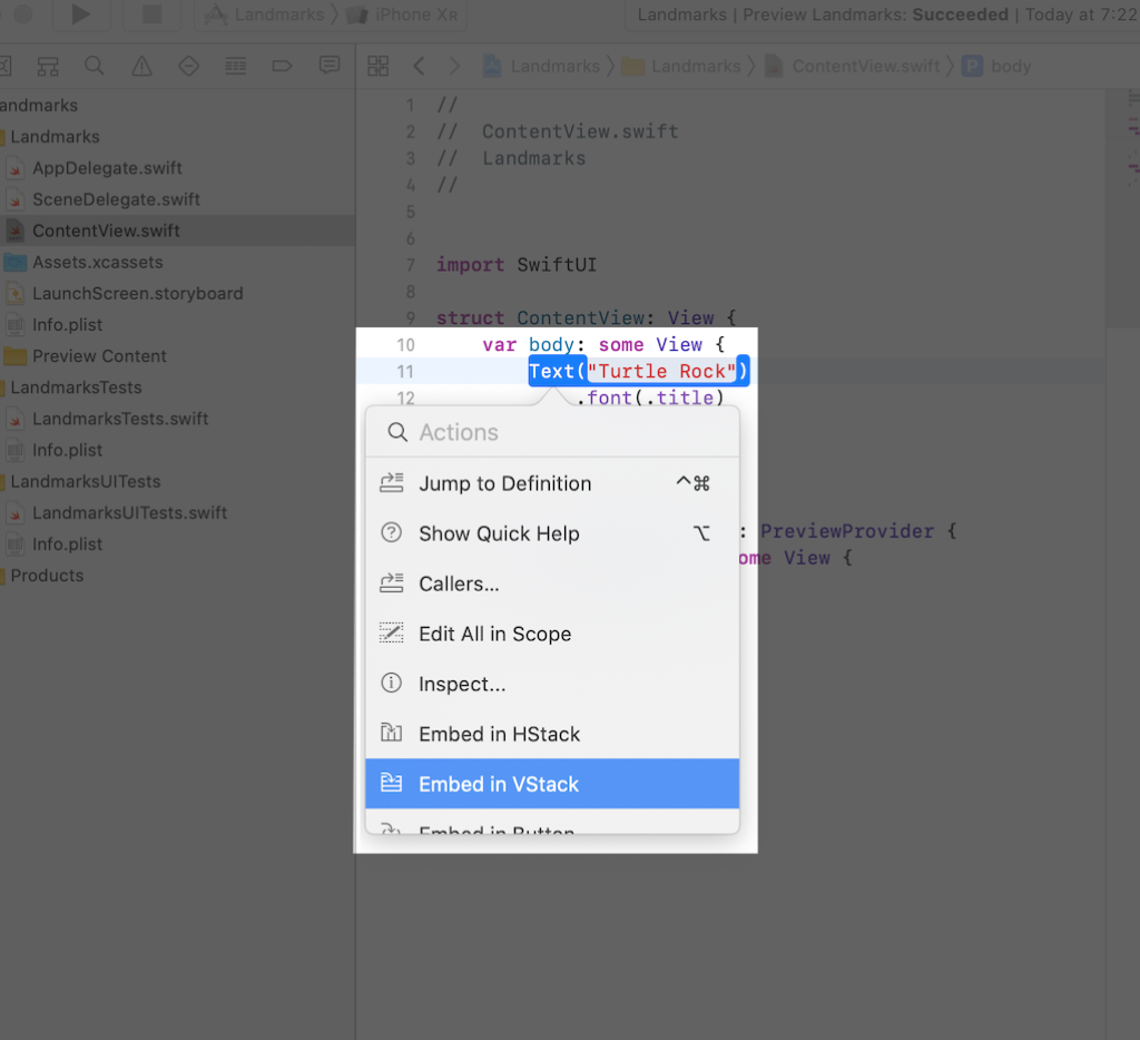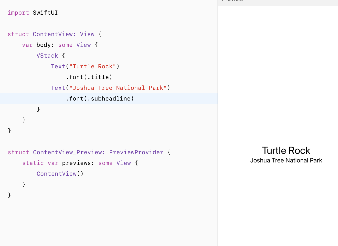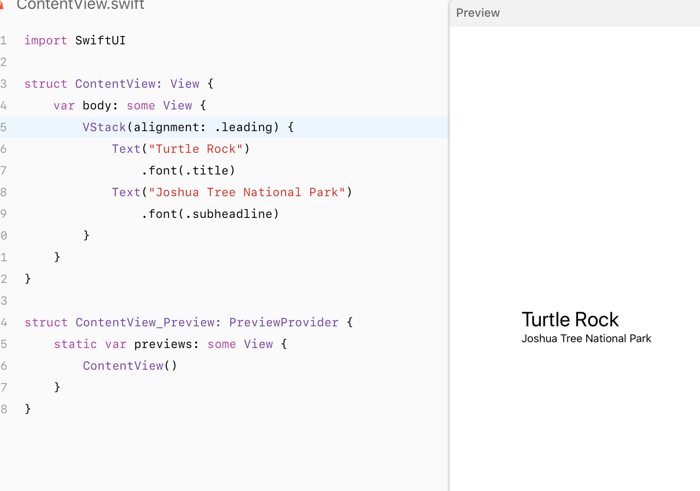 VStack 안에 넣어주자. 코드나 Preview 어디에 넣던지 상관없다.