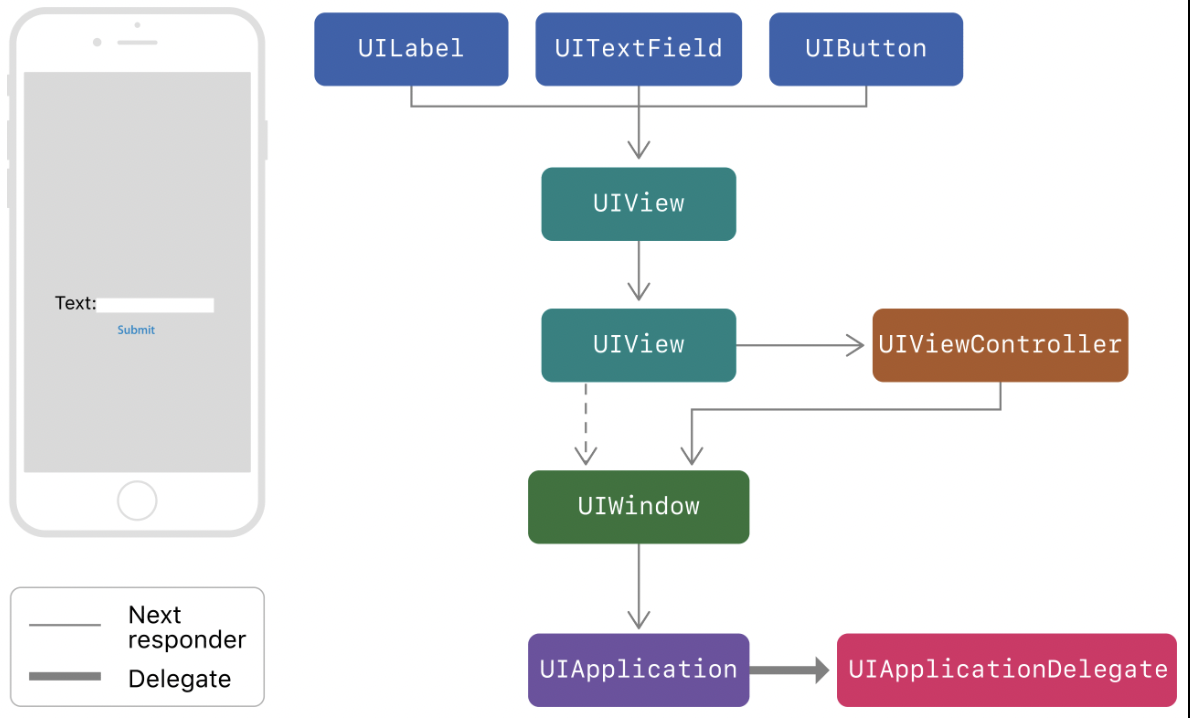 저희가 개발하면서 자주 사용하는 UIApplication, UIViewController, UIView(UIButton, UITextField 등) 모든 사용자가 이벤트를 발생시키는 것들은 responder 객체에 보냅니다.