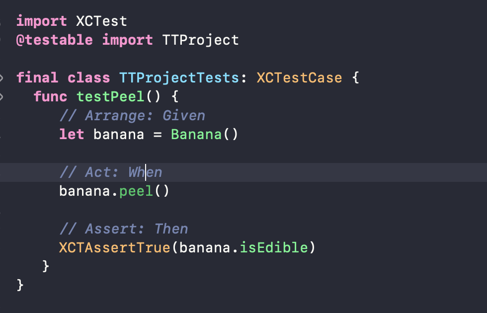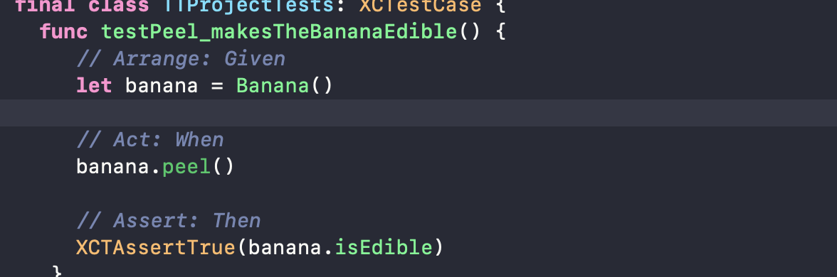 XCTAssertEqual(message, "Hey, want me to peel this banana for you?")