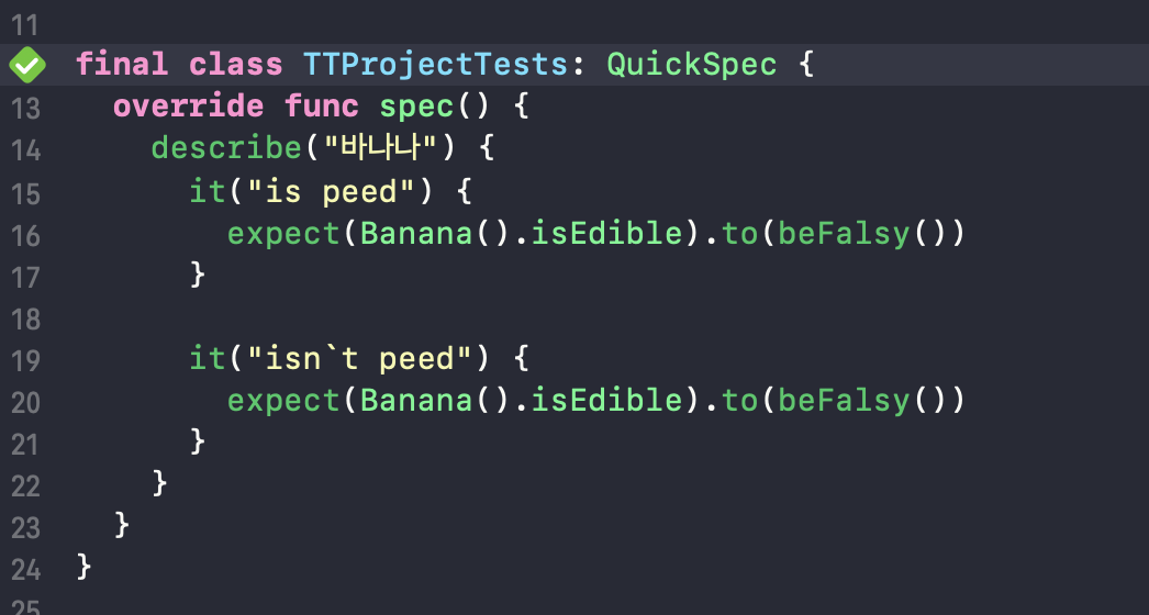 이제 Quick 을 이용해서 테스트 코드를 작성하는데