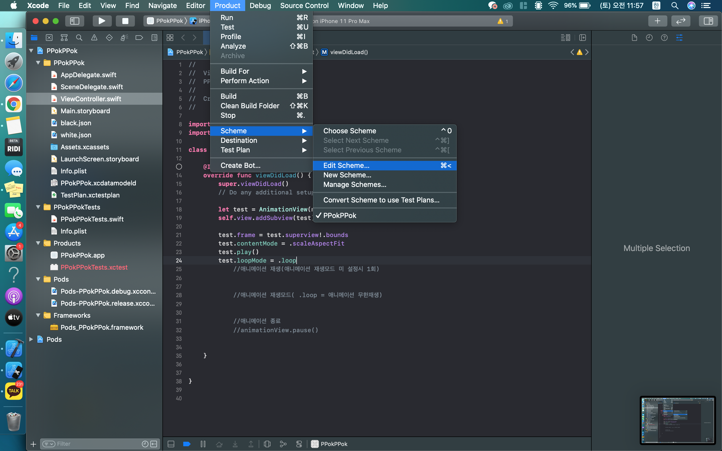 Product > Scheme > Edit Scheme 에 들어가보도록 하자.